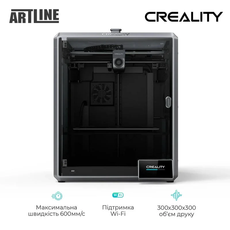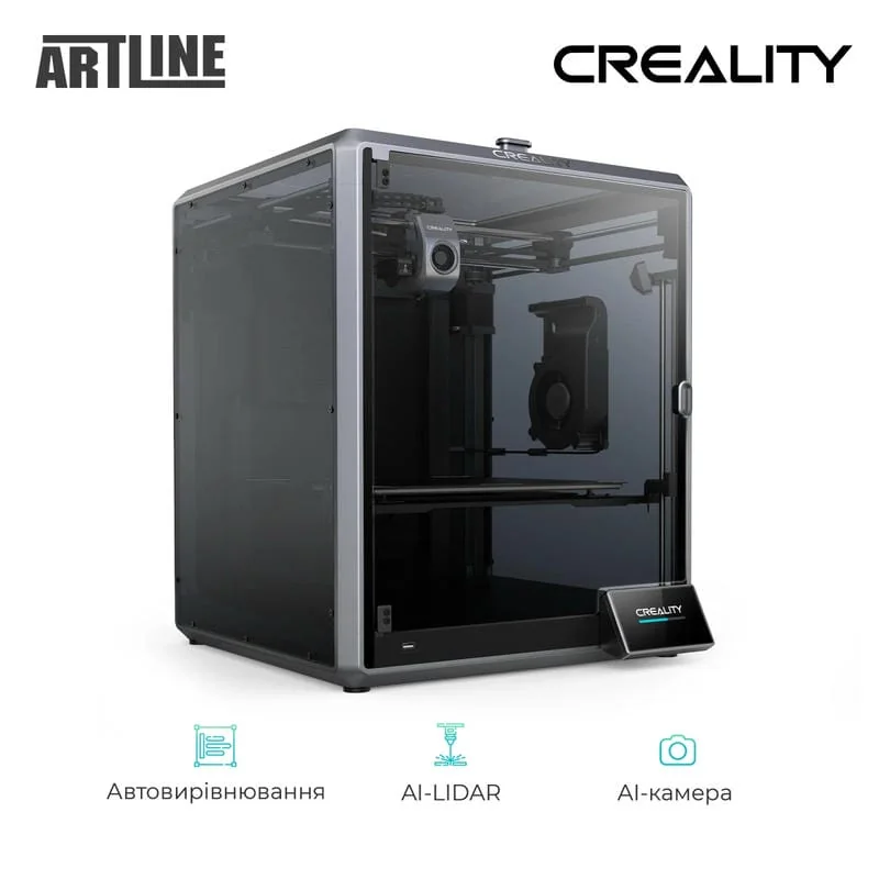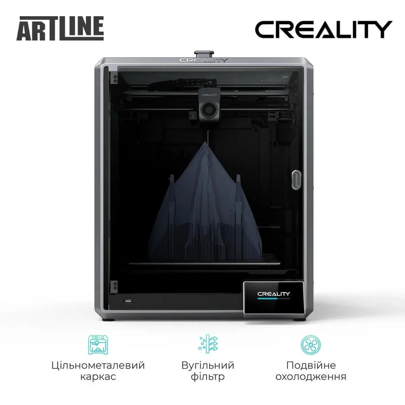 Принтер оснащений автоматичним вирівнюванням, функцією відновлення друку та датчиком закінчення філаменту.