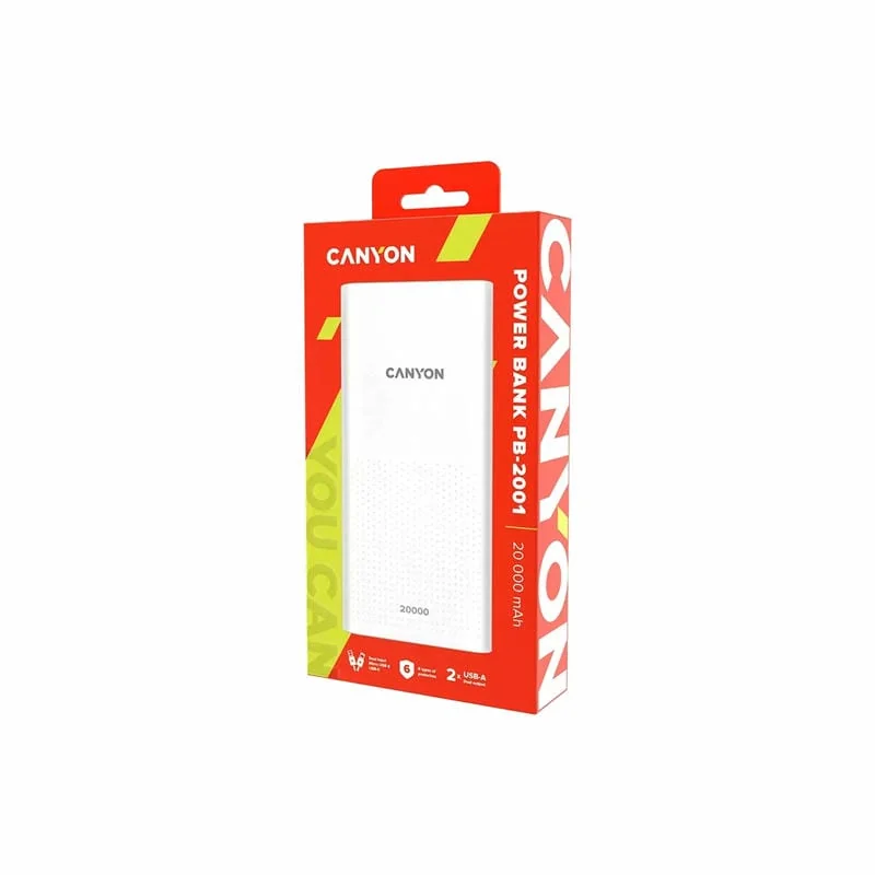 Батарея универсальная Canyon 20000mAh, Input 5V/2A, Output 5V/2.1A(Max), White (CNE-CPB2001W)
