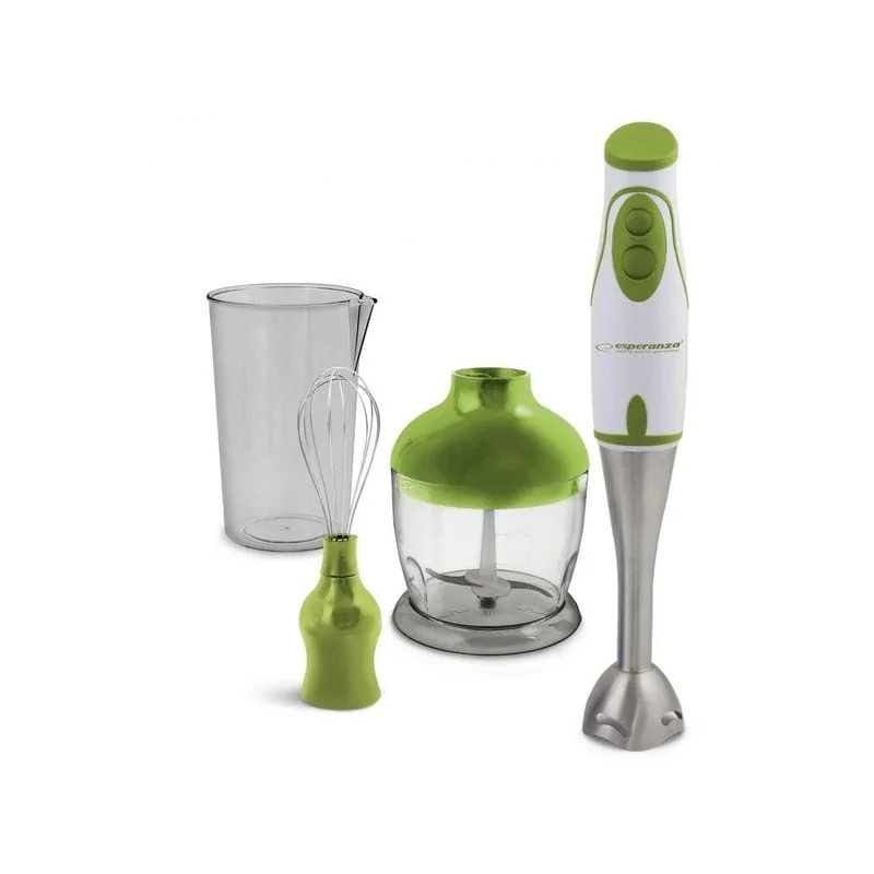 Блендер, миксер, чоппер 3-в-1 Esperanza EKM003G Pesto 450W Green - компактное устройство, которое совмещает в себе сразу три прибора: блендер, миксер, чоппер, с помощью которого вы сможете измельчать овощи и фрукты, взбивать крема, пюре и соусы, делать молочные коктейли и многое другое.