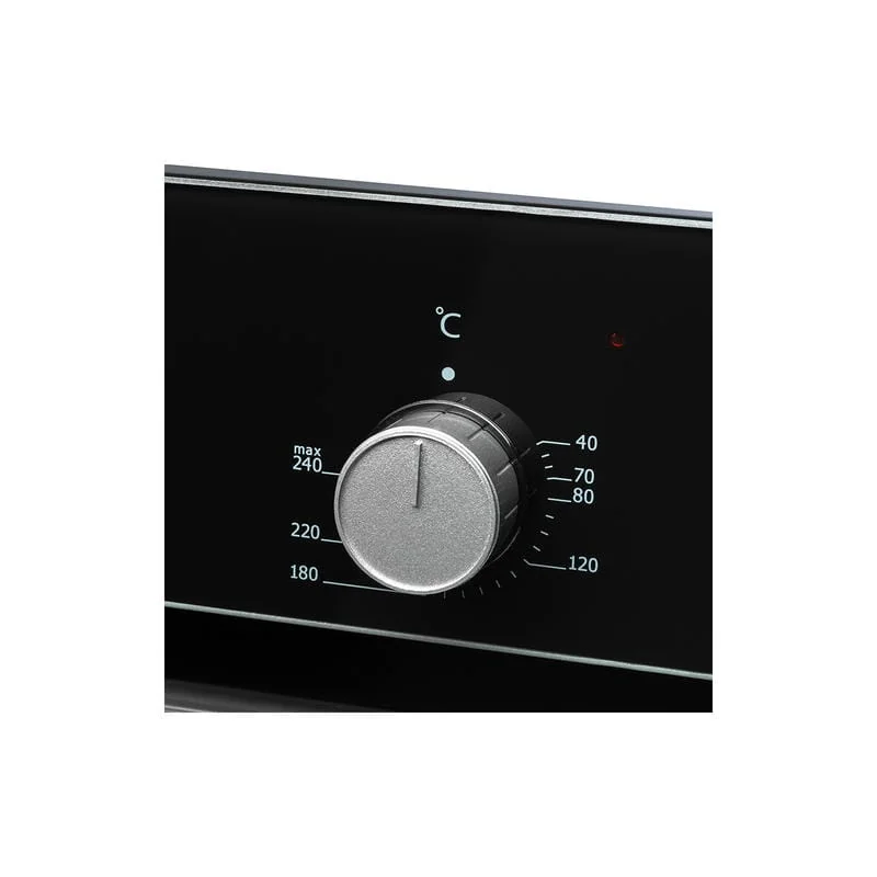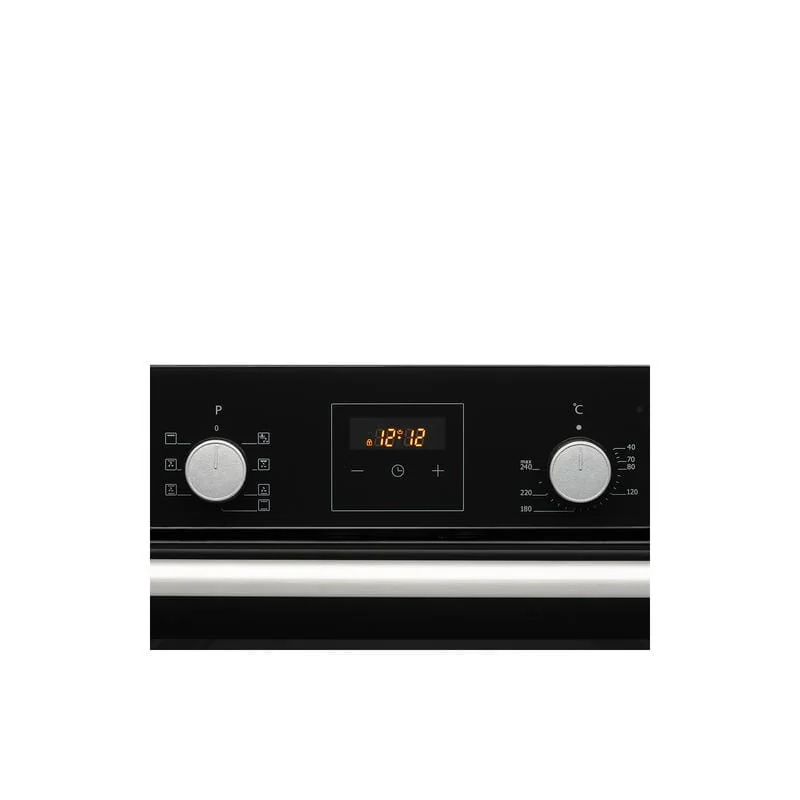 Стильный фасад из нержавеющей стали с дисплеем из закаленного стекла черного цвета на панели управления. 80 литров полезного объема внутренней камеры, семь режимов приготовления, комбинированная панель управления с механическими ручками термостата, и изменения режимов.