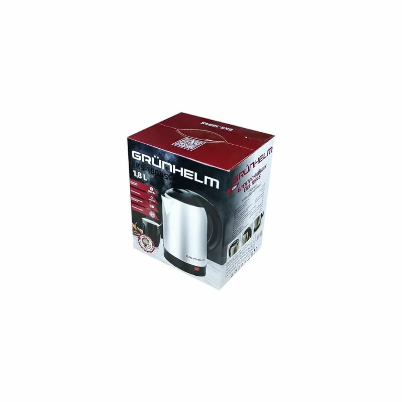Электрочайник GRUNHELM EKS-1894S металл(нержавейка) 1,8л, дисковый 1500 ВтКомплектацияЭлектрочайникБаза под чайникКартонная коробкаИнст...