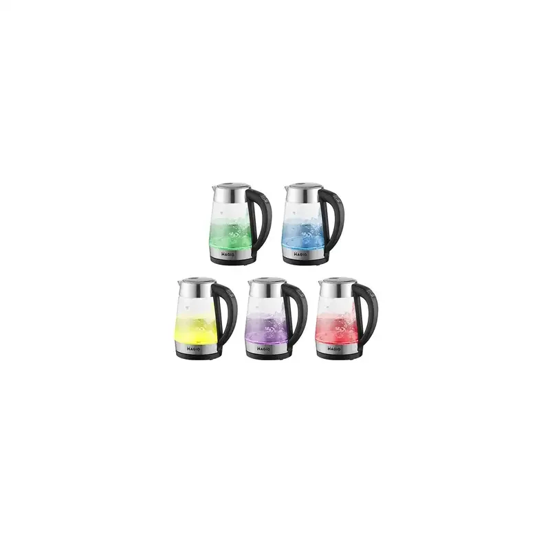Чайник MG-499 объемом 1,7л сочетает в себе стильный дизайн с непревзойденным качеством и долговечностью. Корпус выполнен из прозрачного термостойкого стекла, благодаря чему в воде невозможно появление неприятного привкуса или даже вредных для здоровья веществ. Внутренний световой индикатор работы эффективно озаряет кипящую воду разноцветной подсветкой. При нажатии кнопки механизм открывания крышки срабатывает мягко и плавно. Отсутствует разбрызгивание конденсата из крышки. Скрытый нагревающий элемент обеспечивает быстрое кипение, надежность и легкость очистки чайника, а встроенный контроллер защищает от перегрева. Комплексная система безопасности предотвращает короткое замыкание и выкипание воды. Защита от перегрева обеспечит автоматическое выключение при недостаточном уровне воды.