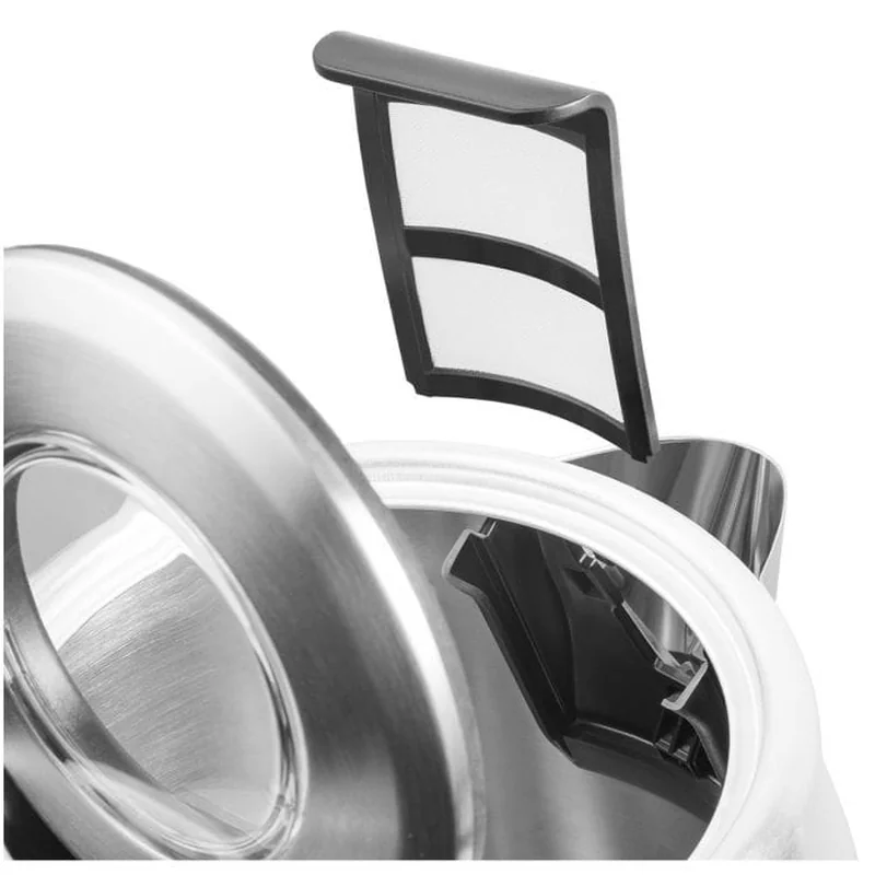 Электрочайник, мощность 2200 Вт, объем 1.7 л, скрытый нагревательный элемент, вращение корпуса на 360 º, фильтр, индикатор уровня воды, открытие крышки кнопкой, качественное исполнение из нержавеющей стали.