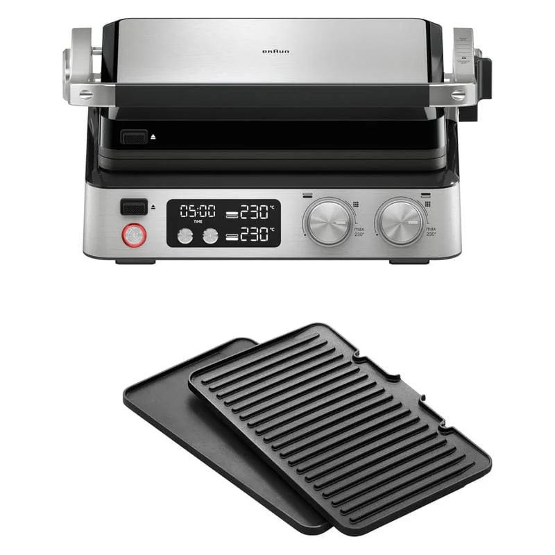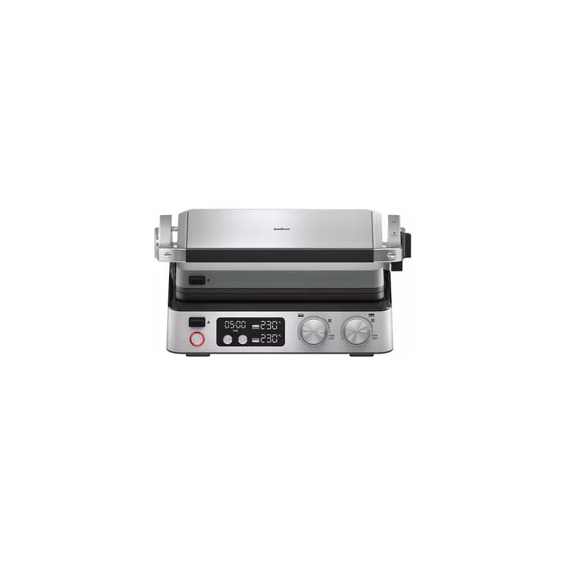 Прибор работает на максимальной мощности 2000 Вт и способен обжаривать продукты разными способами. Доступны 3 режима приготовления для двух термостатов при температуре от 60 ° C до 230 ° C. Вы можете раскрыть две пластины, чтобы увеличить доступную рабочую площадь или готовить на каждой, разные блюда одновременно. Кроме того, прижав верхнюю пластину к нижней, очень удобно создавать горячие бутерброды, причем даже с неравномерной обжаркой. Температура регулируется поворотными переключателями. Рабочие параметры отображаются на жидкокристаллическом дисплее.