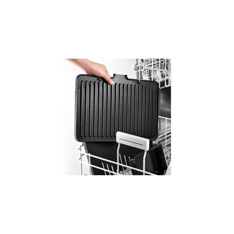 Гриль поставляется с двумя пластинами – плоской и ребристой. Первая оптимально подходит для обжаривания овощей, а вторая специально создана для обжаривания мяса и рыбы гриль. Хотя окончательный выбор остается за поваром и в целом прибор является максимально универсальным. Независимо от выбора способа приготовления, вы получаете возможность создавать деликатесы практически без использования жира. Жир и вся жидкость, образующаяся в процессе приготовления, попадают в выдвижной поддон, откуда могут быть аккуратно удалены.