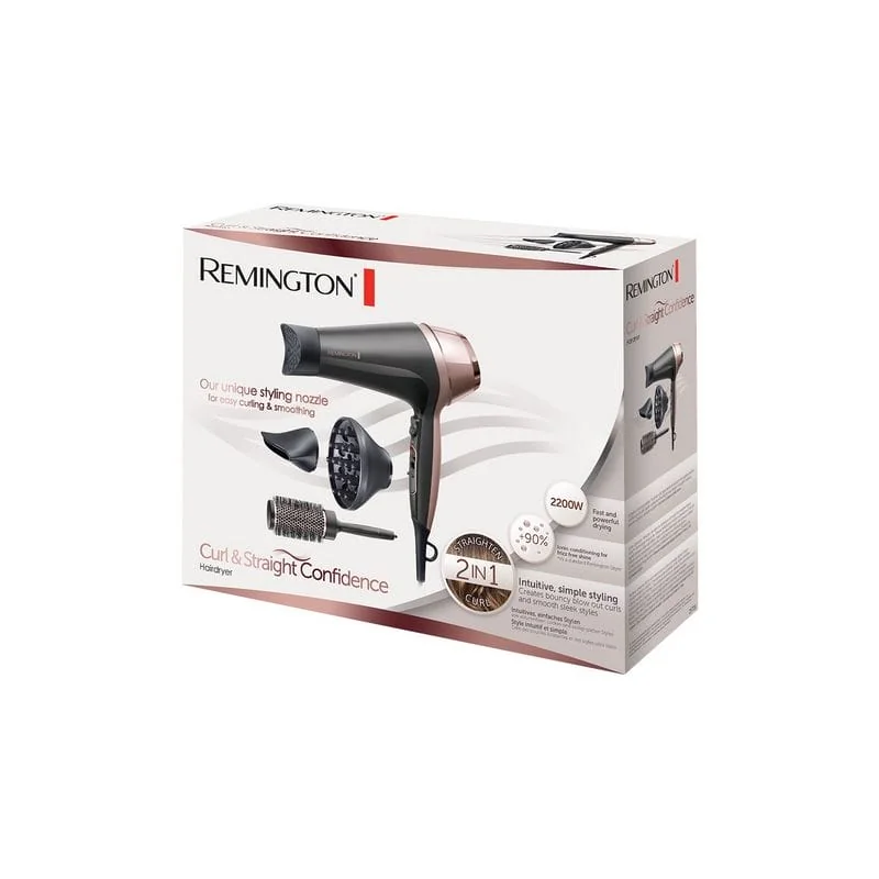 Удобный в использовании Мощный и компактный фен Remington D5706 CURL & STRAIGHT CONFIDENCE стоит купить для достижения дома профессиональных результатов при укладке волос. С помощью прибора можно быстро и безопасно высушить волосы. А также выполнить стильную, аккуратную укладку, которая продержится весь день. Высокие технические показатели позволяют быстро получить идеальный результат. Это не только уменьшает затраты времени, но и уменьшает период воздействие на волосы горячего воздуха. Мощность модели составляет 2200 Вт, а скорость воздушного потока достигает 90 км в час. Профессиональный двигатель надежен, обеспечивает длительную качественную работу, а также выделяется тишиной.
