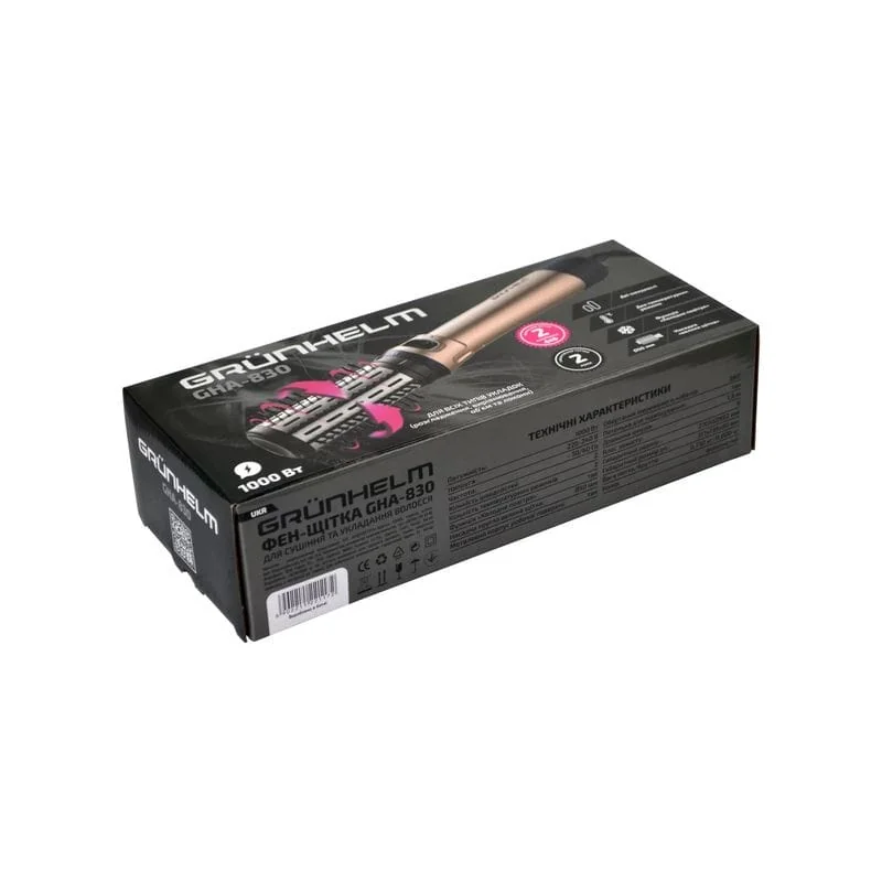 Фен-щетка Grunhelm GHA-830 обеспечивает тройную сушку волос, придает им форму, гарантирует отличный внешний вид и невероятный объем изо дня в день. Технология 3D Volume Booster сочетает в себе мощный воздушный поток со специальной конструкцией щетинной сетки для подъема корней.