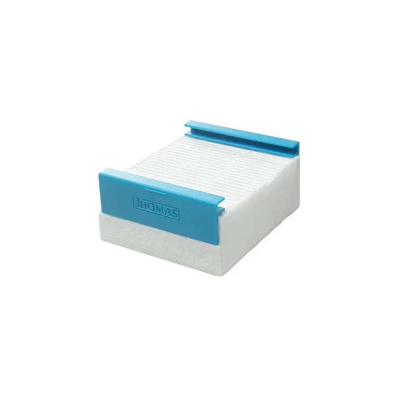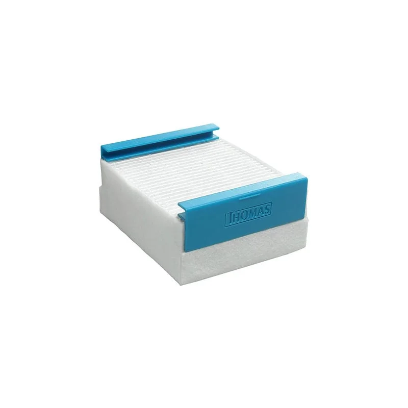 HEPA фильтр 13 класса для пылесосов Thomas серии XT / XS / Perfect Air. Материал фильтра сложен гармошкой для увеличения площади фильтрующей поверхности, что, в свою очередь, продлевает срок службы фильтра без снижения его воздухопроницаемости. Эффективность действия фильтра принято считать в процентах удерживаемых из воздуха частиц размером 0.06 мкм.