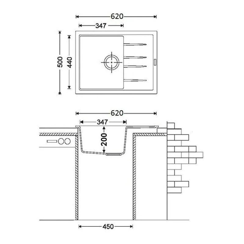 Гранитная мойка Classic 62x50 Antracit Fabiano