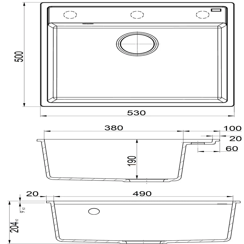 -  Размер мойки: 530*500 мм.
