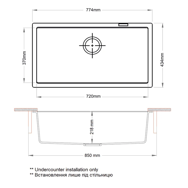 Гранитная мойка Navio 77x43 Antracit Fabiano