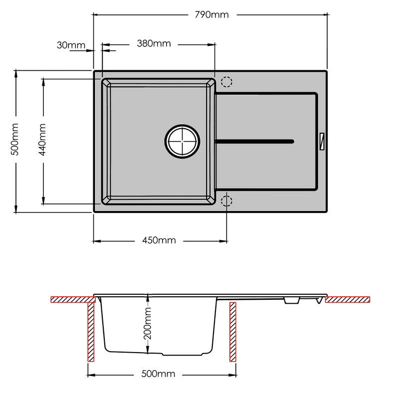 Длина мойки 790