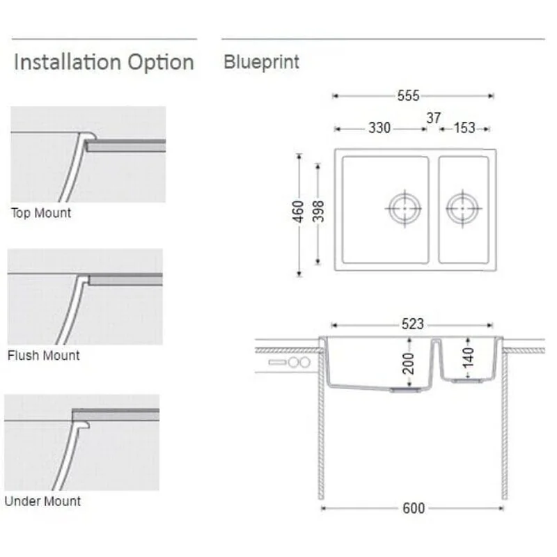 Гранитная мойка Quadro 56x46x15 Grey Metallic Fabiano