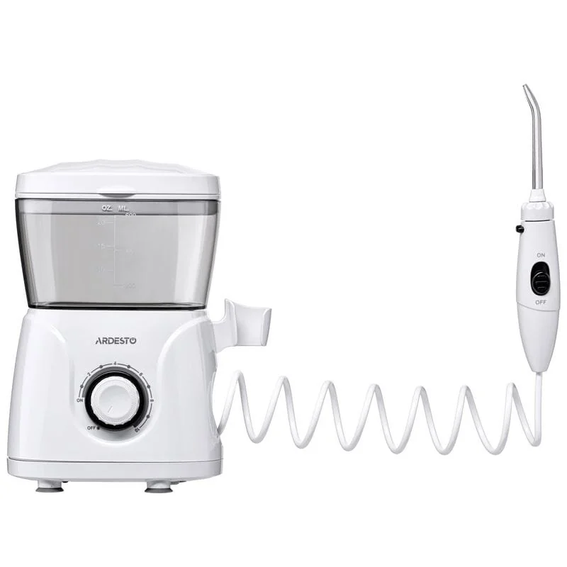 Ирригатор Ardesto OI-MD600W комплектуется большим количеством насадок, включая три стандартные насадки разных цветов. Их могут использовать несколько членов семьи. Дополнительные специализированные насадки предназначены для удаления зубного налета, для ухода за зубами с брекетами и зубными протезами, для массажа десен, очистки языка, а также более тщательной очистки каждого зуба с помощью щетки с гидравлическим вращением.