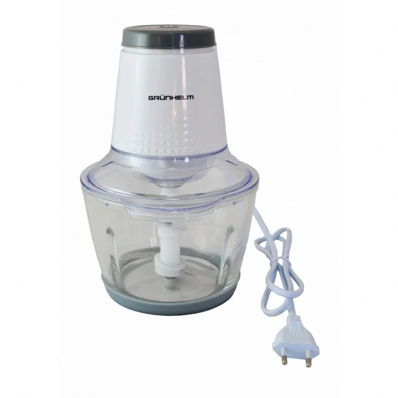 Измельчитель Grunhelm EBS-500G рассчитан на ежедневную работу на вашей кухне. Модель бытового назначения позволит быстро справиться с измельчением. Компактность совмещена с производительностью, позволяет достичь наилучшего результата. Чаша измельчителя изготовлена из термостекло, ее объем 1200 мл Нож для измельчения выполнен из качественной нержавеющей стали с 4 лезвиями. Для антискольжения предусмотрены прорезиненные ножки.