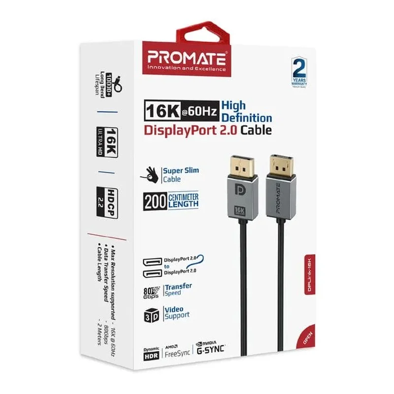 Кабель мультимедийный DisplayPort to DisplayPort v.2.0 dplink-16k.black Promate (dplink-16k.black)