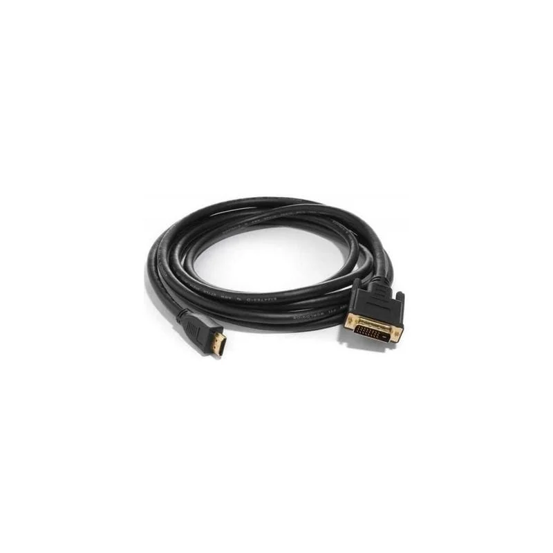 HDMI to DVI 24pin, 5.0m Atcom (9154) - кабель для соединения источника видеосигнала (видеоадаптер, DVD-плэйер и др.) с интерфейсом HDMI и устройства вывода изображения (телевизор, монитор и др.) с интерфейсом DVI. Экранировка для снижения помех, позолоченные контакты. Кабель изготовлен из высококачественного полихлорвинила, жилы проводников отлиты из чистой бескислородной меди, а изолятор сделан из вспененного полиэтилена.