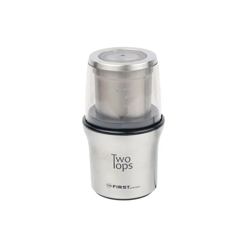 Роторная, компактная кофемолка FA-5486 мощностью 200 Вт от компании FIRST оснащается отсеком для кофейных зерен емкостью 70 грамм.