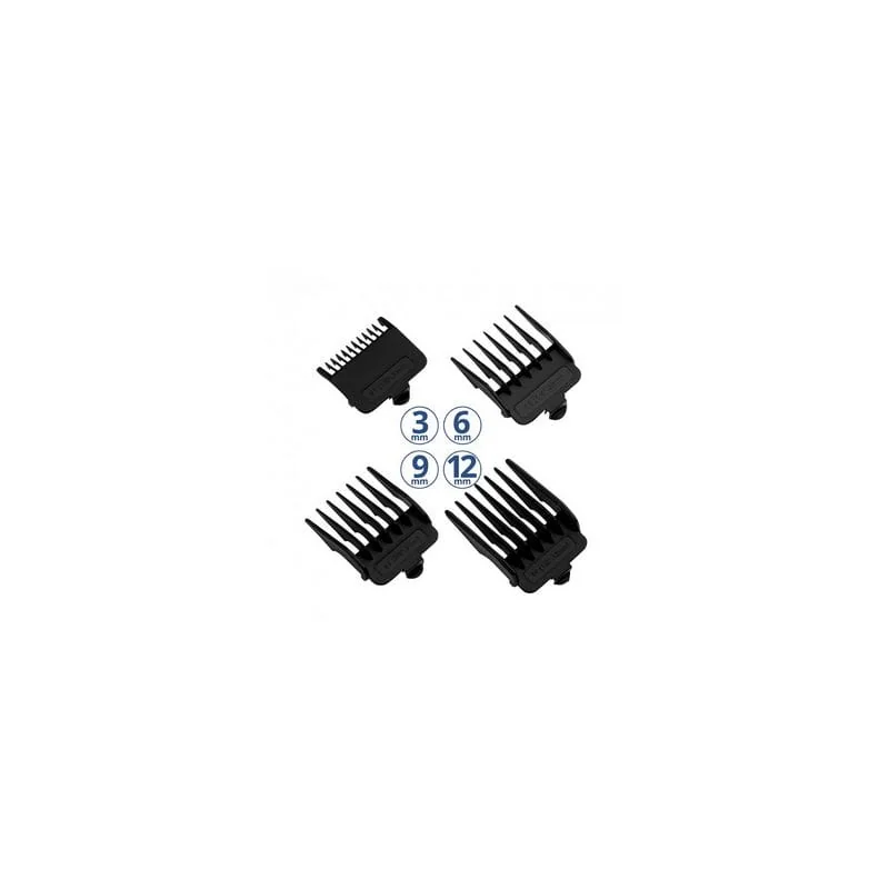 - Набор сменных насадок в комплекте с диапазоном стрижки от 3 до 12 мм.