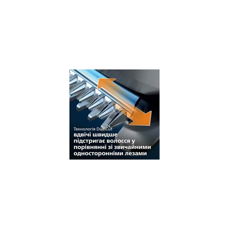 Усовершенствованная технология DualCut: благодаря инновационному двустороннему режущему блоку стрижка в два раза быстрее по сравнению с одинарным.