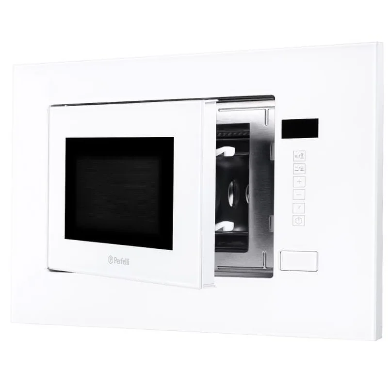 Компактные размеры позволят установить эту микроволновку даже в верхнем навесном шкафу. Это открывает новые возможности организации места на вашей кухне. Дизайн передней панели микроволновки Perfelli BM 205 оформлен с использованием закаленного стекла.