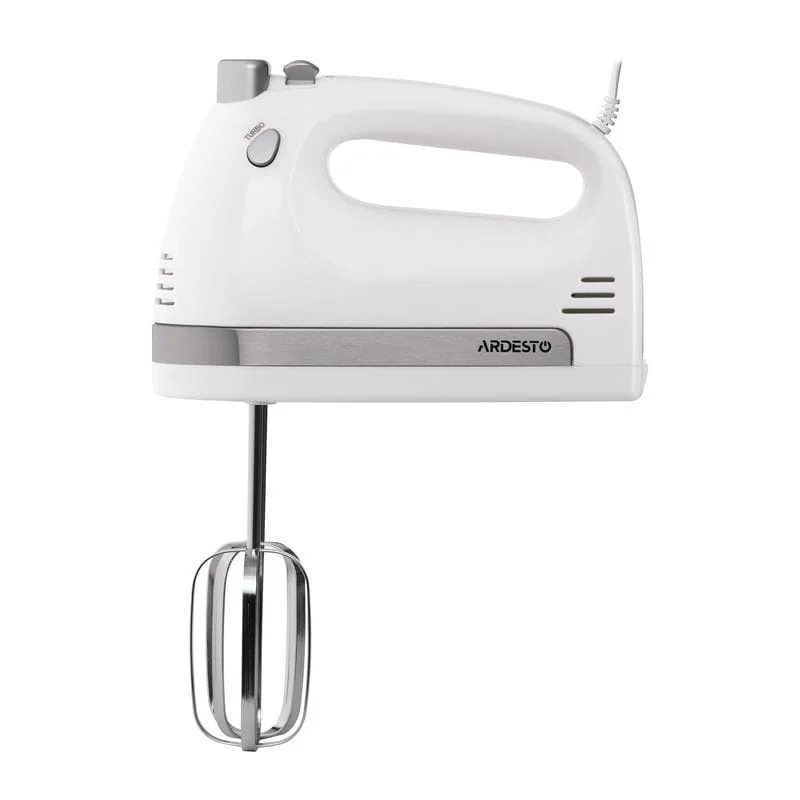 Ручной миксер ARDESTO HMC-3000W с двигателем медной обмоткой в корпусе белого цвета. Мощность устройства составляет 300 Вт. Миксер имеет компактный размер, благодаря чему уместится в кухонном ящике или шкафу. Предусмотрена удобная рукоятка для управления и маневрирования во время приготовления. Наличие 5 скоростей позволяет выбрать наиболее оптимальную. Кнопка турбо делает пользование более эффективным. В комплекте есть самое необходимое: венчик для взбивания × 2 шт.; крючки для теста × 2 шт. Система безопасности предусматривает защиту от перегрева. Длина шнура составляет 1,2м.
