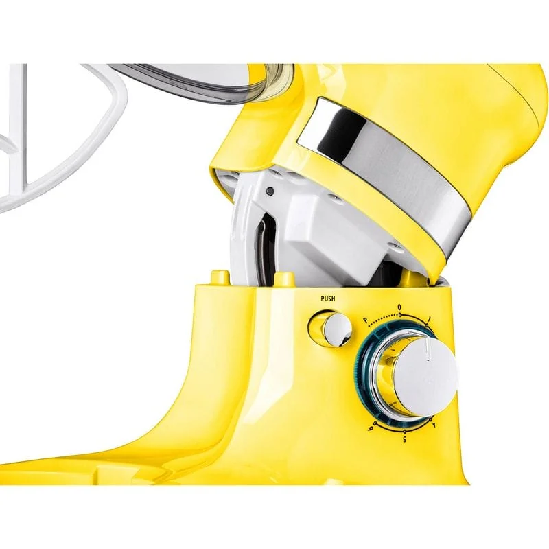 Планетарный миксер для взбивания большого количества ингредиентов и быстрого замеса теста. В комплект поставки входит чаша с крышкой, а также три типа насадки.
