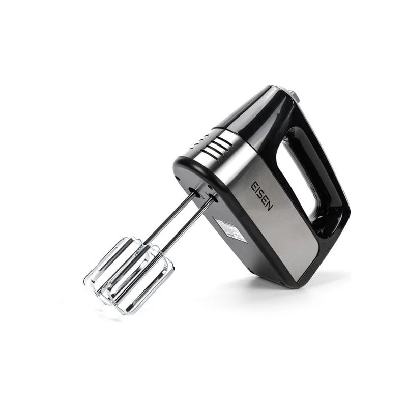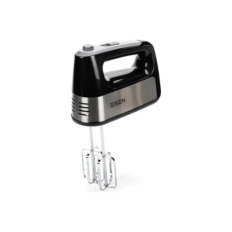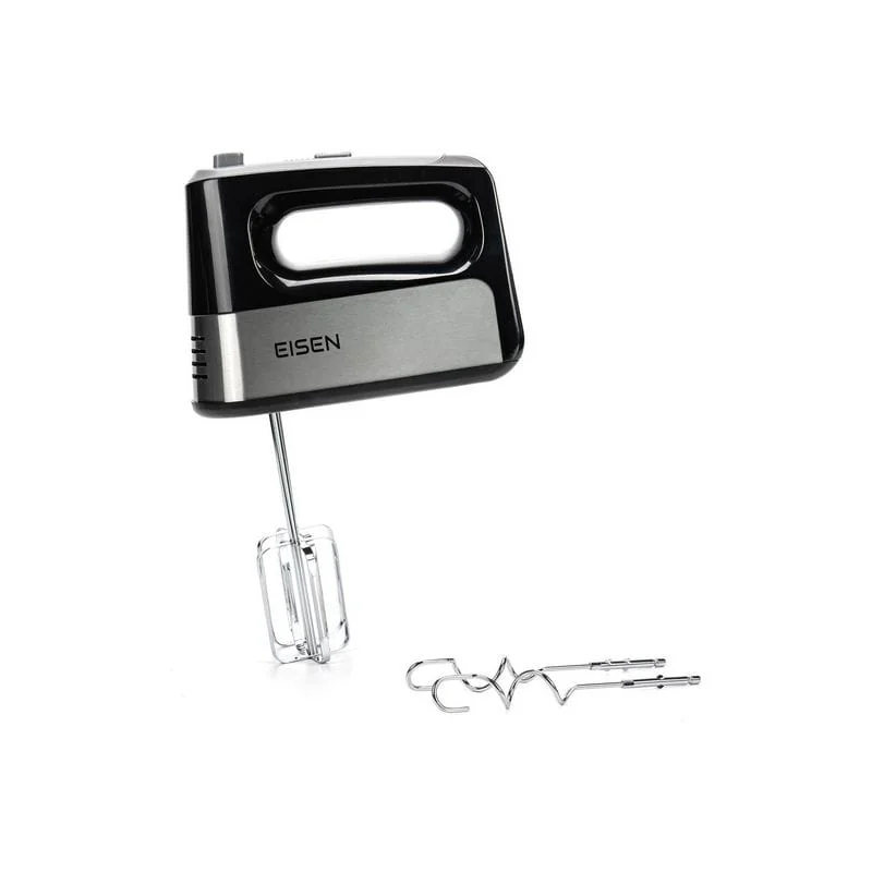 Современная модель EISEN EHM-345 представлена в черном цвете. Корпус миксера изготовлен из качественного пластика, а венчики для взбивания и крюки для теста – из нержавеющей стали.