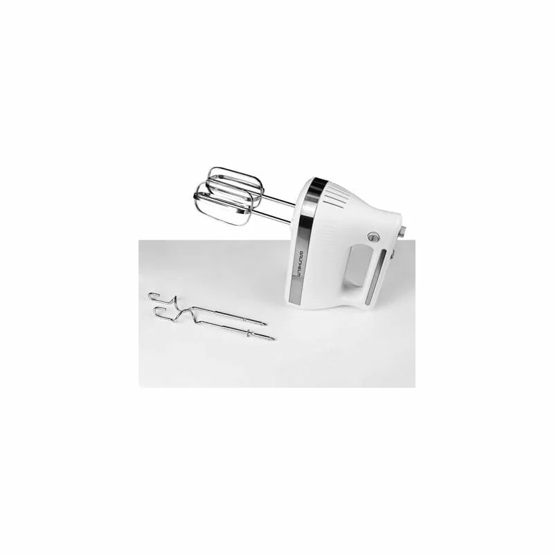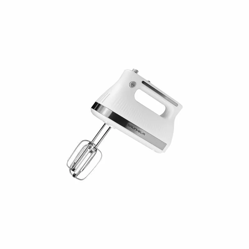 Миксер ручной GRM669 Grunhelm – если вы не представляете свою жизнь без создания кулинарных шедевров, то вам просто необходим такой кухонный прибор как ручной миксер GRM661 Grunhelm. Именно с его помощью вы легко сможете справиться со сложными кулинарными процессами и получить гарантированно хороший результат. Его мощности (400 Вт) вполне достаточно, чтобы быстро справляться с такими процессами как взбивание, яйца, белки, сливки, а также соединение различных ингредиентов для приготовления пирогов и тортов. Работа миксера возможна в пяти скоростных режимах. Первая и вторая скорость поможет качественно сочетать сухие ингредиенты, третья справится с приготовлением соусов, а четвертая и пятая позволит с легкостью соединить сложные продукты для выпечки. Благодаря небольшому весу (1,07 кг) даже длительный процесс смешивания будет проходить легко и непринужденно.