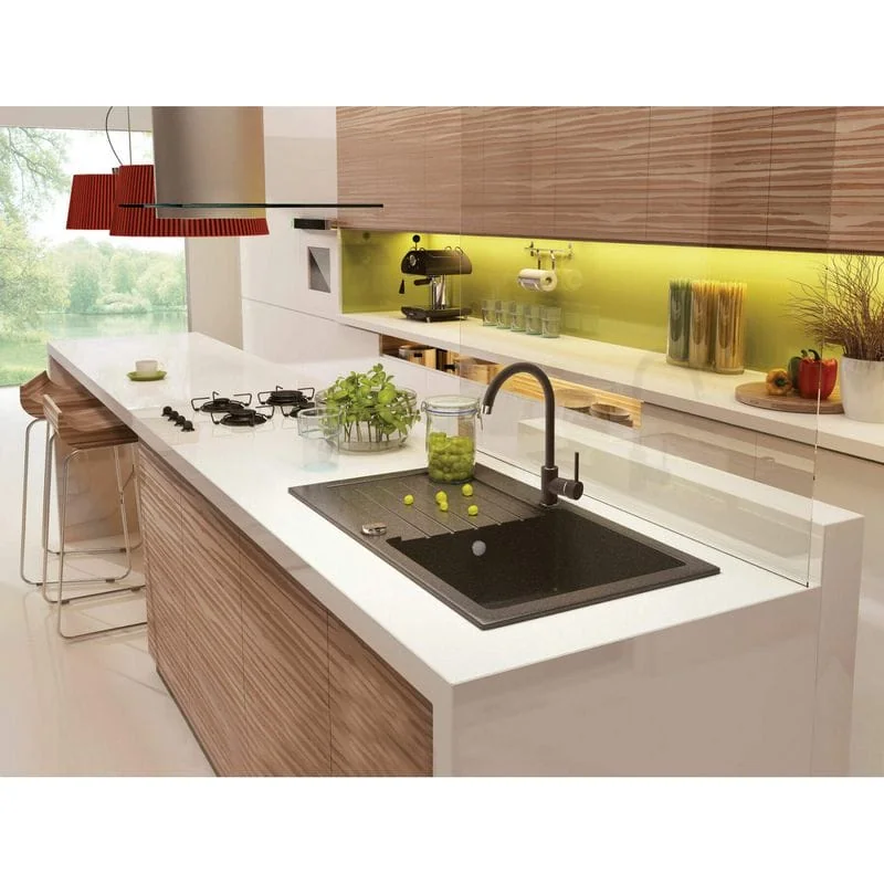 Мойка с возможностью подключения к посудомоечной машине. Гидрофобные характеристики отталкивают молекулы воды.