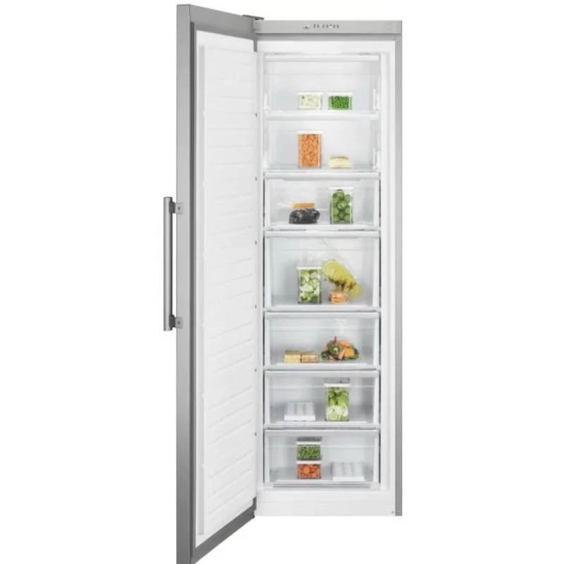 Морозильная камера Electrolux RUT7ME28X2 оснащена инверторным мотором, который отличается тихой и эффективной работой. Система NoFrost исключает появление льда на стенках. Поэтому эффективность охлаждения со временем не падает. При этом отсутствует необходимость в размораживании устройства. Достаточно просто поддерживать чистоту внутри и снаружи, чтобы работа была надежной и безопасной. Внутреннее пространство модели разделено на отсеки с помощью пластиковых контейнеров. Такой подход очень удобен, так как позволяет вытащить ящик целиком для его загрузки. Это не даст выветриваться холоду.