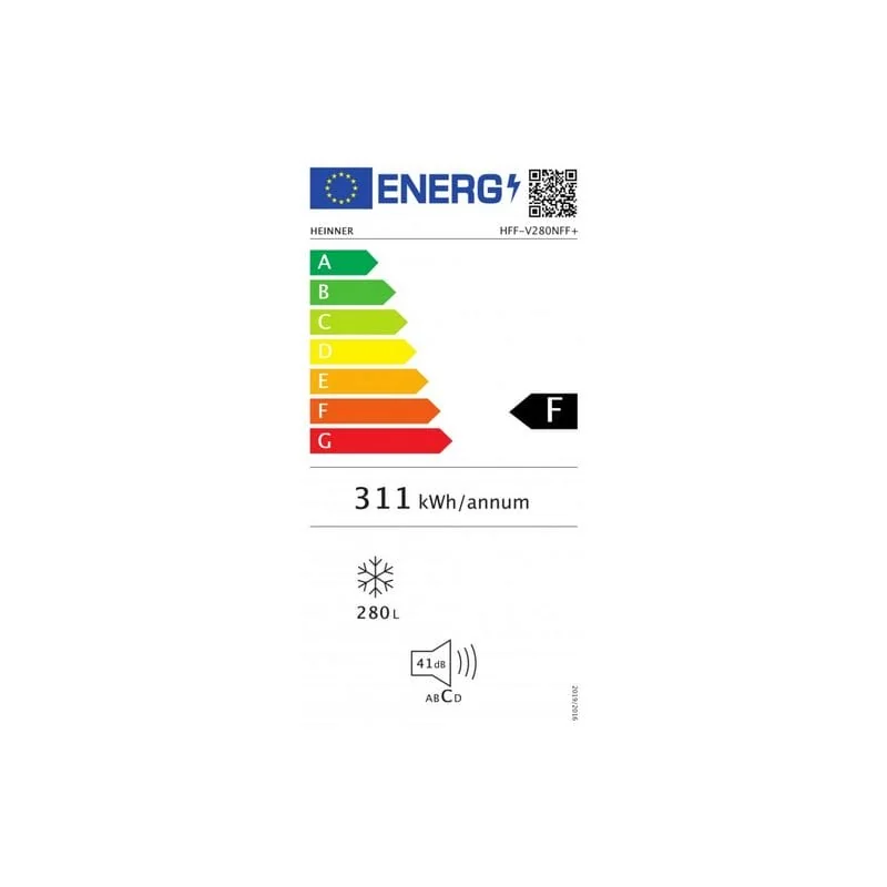 Морозильная камера Heinner HFF-V280NFF+, Full No Frost, Класс энергоэффективности: F, Общий объем: 280 л, Электронное управление, Технология «Freezer shield» (работает при низких температурах - до -15°C), Функция быстрой заморозки, 7 морозильных камер отделения, Перекидывающиеся дверцы, Форма для кубиков льда, Мощность заморозки: 13 кг/24 ч., Размеры (ШxГxВ): 59,5 x 65 x 186 см