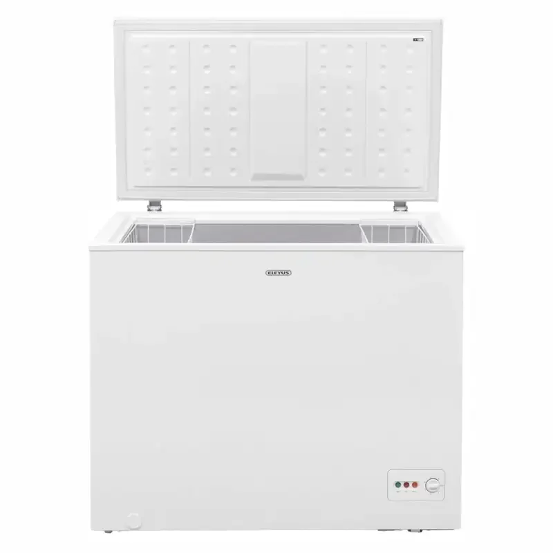 ELEYUS MFD085M WH250 – морозильный ящик объемом 250 литров. Оснащен статической системой охлаждения, быстро размораживается и легко очищается благодаря дренажной системе.