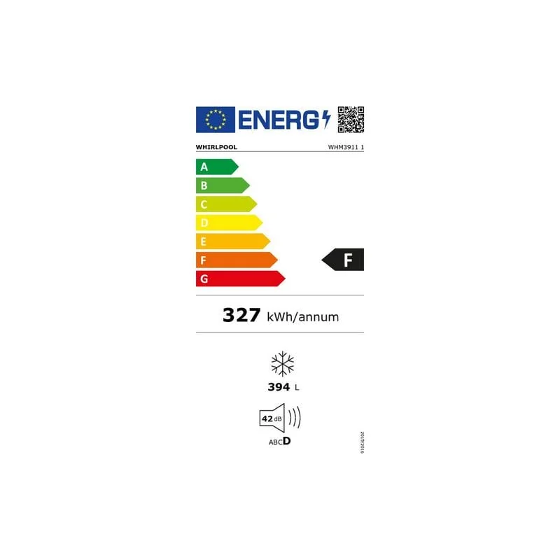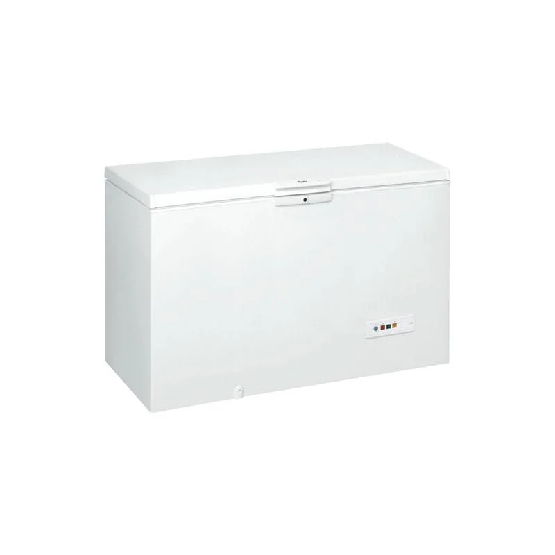 Морозильный сундук Whirlpool WHM 3911 больше используется для хранения больших объемов замороженных продуктов. При размерах 140,5×91,6×69,8 см полезный объем камеры составляет 390 л. Конструкция прибора предполагает наличие откидной крышки, простого и понятного механического управления, трех корзин и замка. Имеется индикация температуры, позволяющая контролировать работу сундука. Несмотря на большую емкость прибор достаточно экономичен в энергопотреблении, соответствуя классу энергоэффективности А+. Он способен обеспечить мощность замораживания до 17 кг/сутки и автономно поддерживать холод в течение 45 часов подряд.