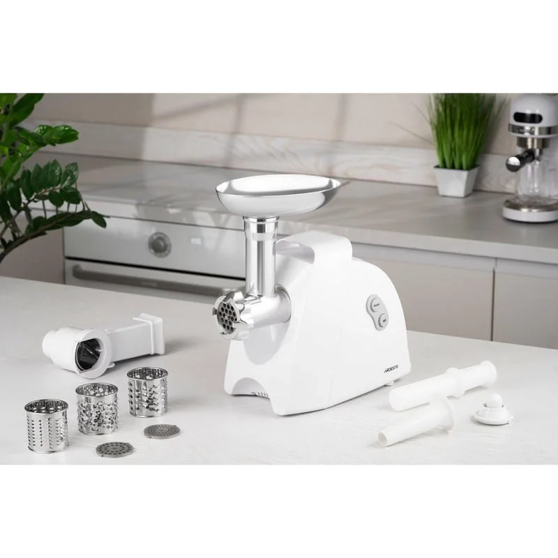 Модель удобна и проста в использовании, легко справится с большим количеством мяса разной твердости, даже с жилистым и жирным, – и без всяких физических усилий! Широкий комплект снабжения позволит реализовать кулинарные таланты, готовя вкусные фрикадельки, котлеты или другие мясные блюда из фарша однородной консистенции.