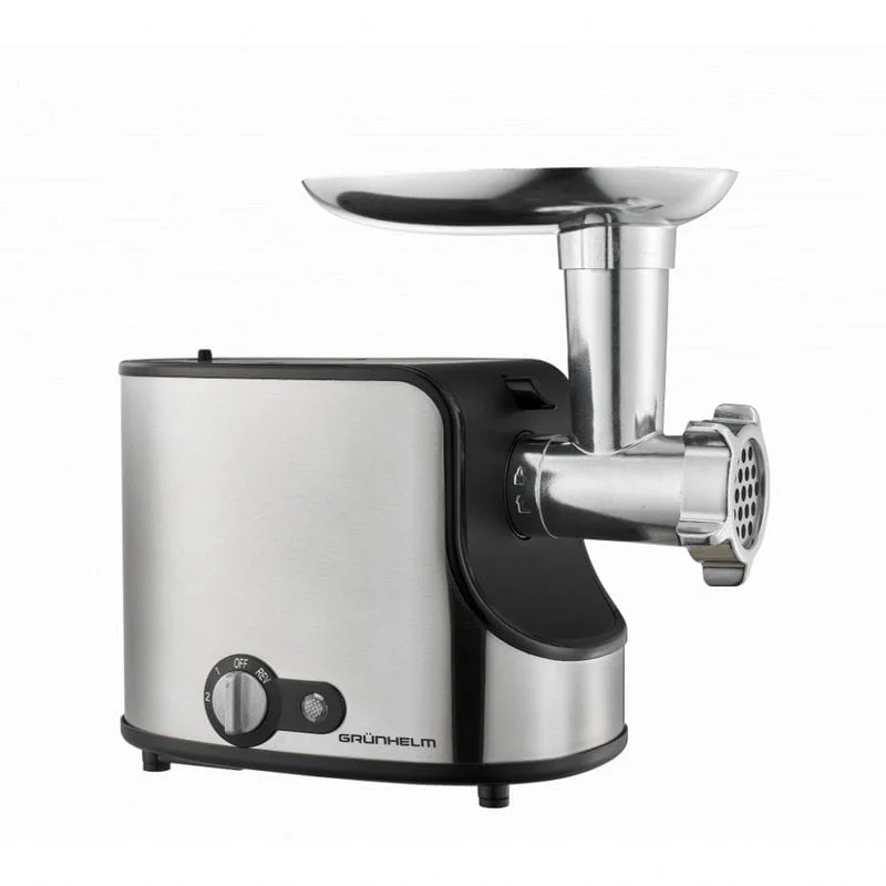 Электрическая мясорубка Grunhelm оснащена функцией обратного хода (реверса), которая проворачивает шнек устройства в обратную сторону и помогает извлечь застрявшее мясо и намотанные жилы. Таким образом можно переработать даже самое жесткое мясо.