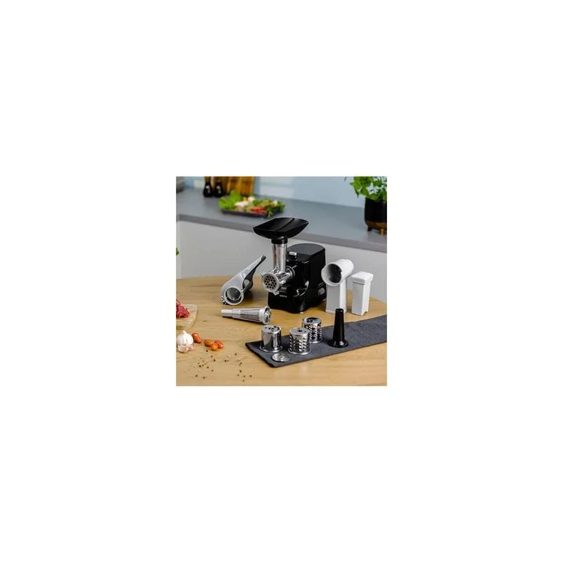 Максимальная мощность: 1500 ВтПроизводительность: 1,8 кг/минФункция реверса: даКоличество решеток: 2Размер отверстий решеток: 3 мм, 7 ммТип ножа: одностороннийНасадка для колбасыЛоток для подачи мясаИзмельчитель с набор...