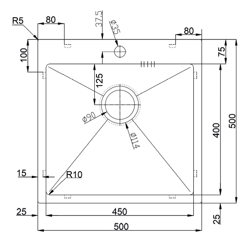 Длина мойки 500 Крыло Нет Производитель Fabiano Серия Серия Brush Aisi 304 Все характеристики