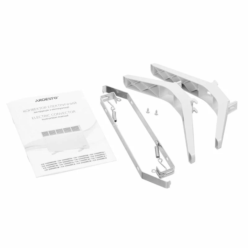 Ardesto CH-2500MCW использует надежные комплектующие - закрытый оребренный нагревательный элемент немецкой компании Eihenauer, а также итальянский высокоточный биметаллический термостат. Отсутствие подвижных компонентов и продуманная конструкция полностью исключает любые шумы при работе. Механическое управление состоит из клавиши включения с защитной накладкой и поворотного регулятора мощности. Конвекторы Ardesto поддерживают два типа монтажа - настенный и напольный. Кронштейны и опоры поставляются в комплекте с обогревателем.