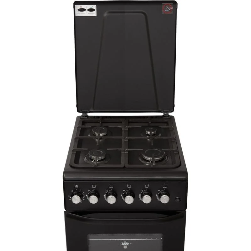 ELEYUS CAST 5001 – кухонная плита с газовой варочной поверхностью и газовым духовым шкафом объемом 50 л. Металлическая крышка защищает стену от загрязнений при готовке, а регулируемые ножки позволяют изменить высоту плиты и надежно ее установить.