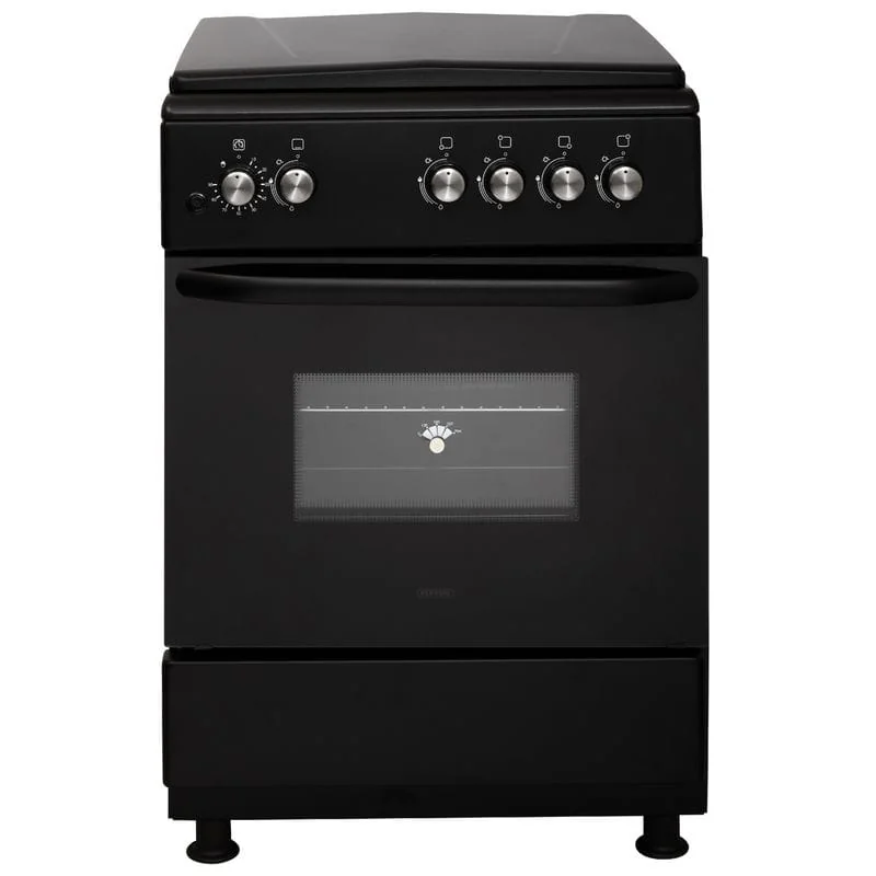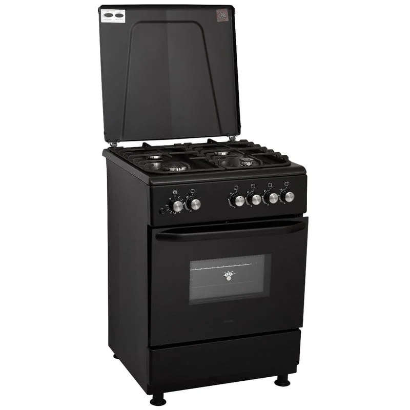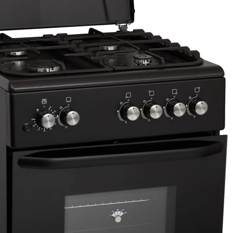 ELEYUS CAST 6001 – кухонна плита з газовою варильною поверхнею та газовою духовою шафою об’ємом 64 л. Розміри кухонної плити – 60 × 60 см. Металева кришка захищає стіну від забруднень під час готування, а регульовані ніжки дозволяють змінити висоту плити та надійно її встановити.