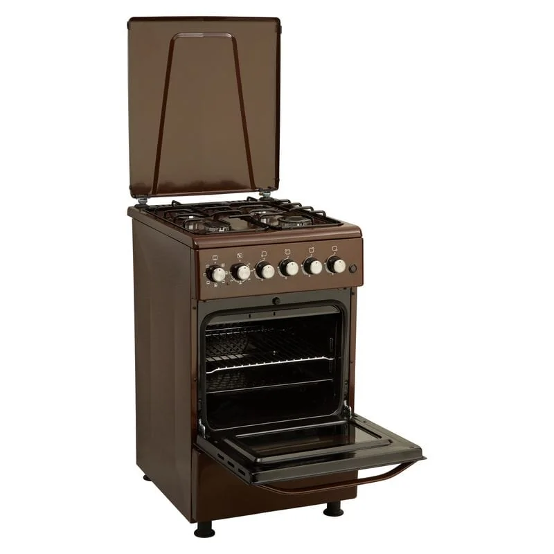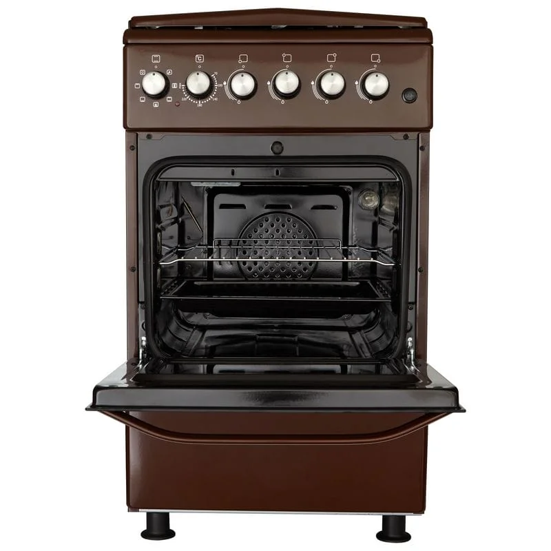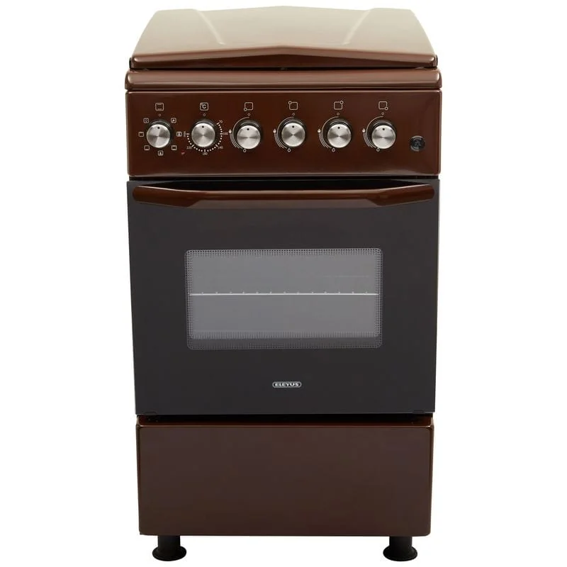 ELEYUS COMBO 5007 – кухонная плита с газовой варочной поверхностью и электрическим духовым шкафом объемом 52 л. Имеет защитную металлическую крышку и регулируемые ножки, чтобы изменить высоту плиты и надежно установить ее.