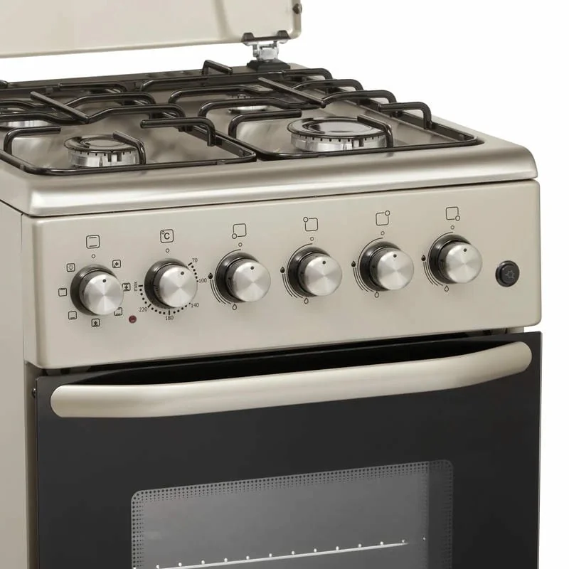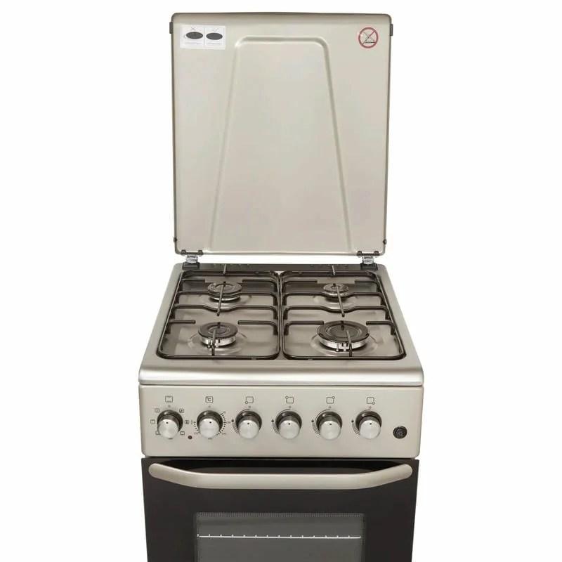 ELEYUS COMBO 5007 совмещает газовую варочную поверхность и электрический духовой шкаф объемом 52 л. Размеры кухонной плиты – 50 × 60 см. Металлическая крышка защищает стену от загрязнений при готовке, а регулируемые ножки позволяют изменить высоту плиты и надежно ее установить.
