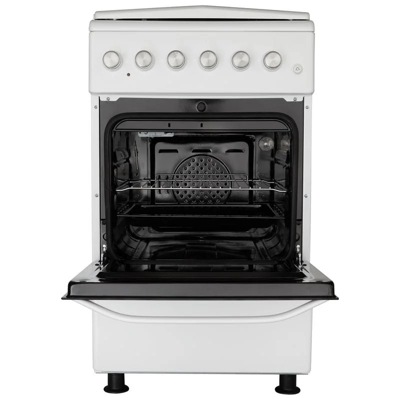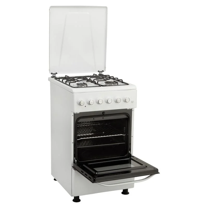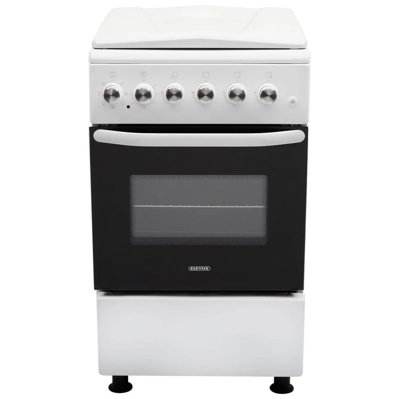 ELEYUS COMBO 5007 – кухонная плита с газовой варочной поверхностью и электрическим духовым шкафом объемом 52 л. Имеет защитную металлическую крышку и регулируемые ножки, чтобы изменить высоту плиты и надежно установить ее.