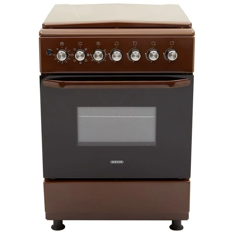 ELEYUS COMBO 6007 – кухонная плита с газовой варочной поверхностью и электрическим духовым шкафом объемом 64 л. Имеет таймер с автовыключением, металлическую защитную крышку и регулируемые ножки, чтобы изменить высоту плиты и надежно ее установить.