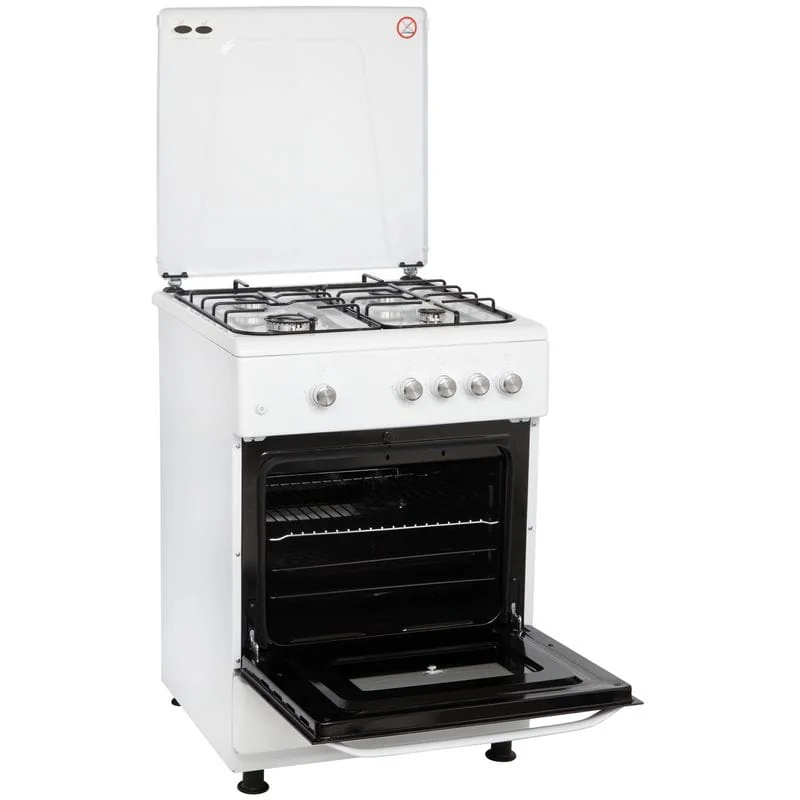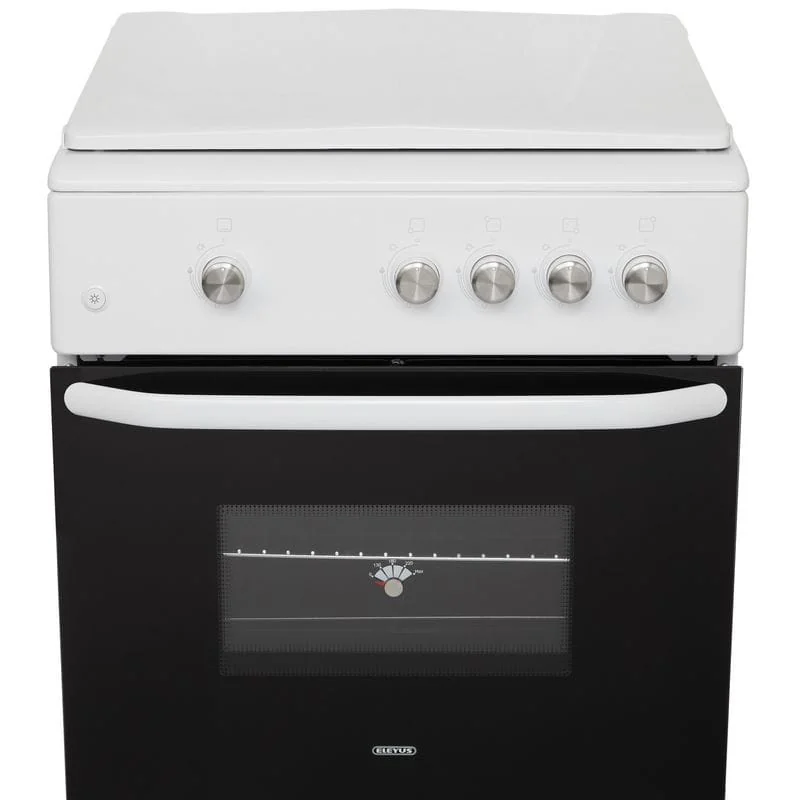 ELEYUS FARO 6001 – кухонная плита с газовой варочной поверхностью и газовым духовым шкафом объемом 50 л. Металлическая крышка защищает стену от загрязнений при готовке, а регулируемые ножки позволяют изменить высоту плиты и надежно ее установить.