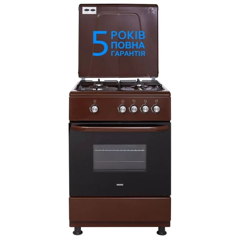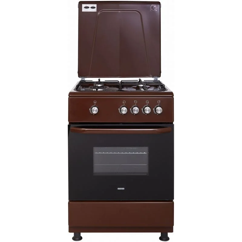 ELEYUS ORUM 6001 – кухонная плита с газовой варочной поверхностью и газовым духовым шкафом объемом 64 л. Металлическая крышка защищает стену от загрязнений при готовке, а регулируемые ножки позволяют изменить высоту плиты и надежно ее установить.