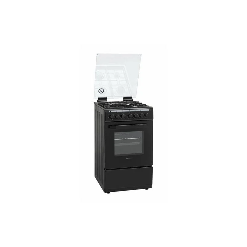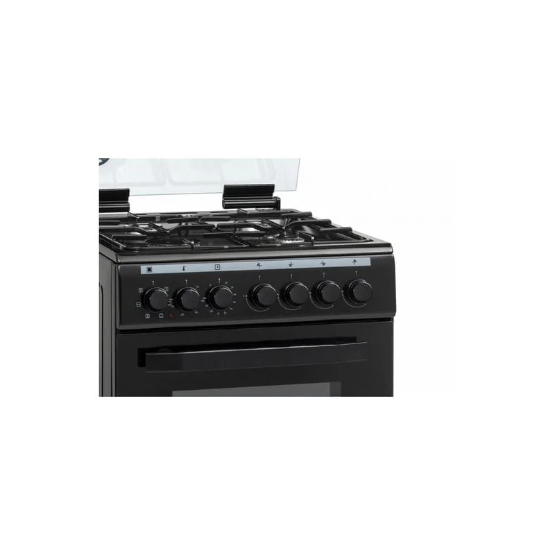 Комбинированная плита Heinner HFSC-V60LITGC-BK, 50x60 см, 4 газовые конфорки, Эмалированная подставка для кастрюли, Стеклянная крышка, Автоподжиг для плиты, Газовая безопасная плита, Электрическая духовка, 6 функций, Таймер, Гриль, Вентилятор, Размораживание, Съемная двойная стеклянная дверца духовки, нижний ящик, газовый отстойник, запасные насадки для сжиженного газа в комплекте, противень и решетка, размеры (ШxГxВ): 50x60x85 см