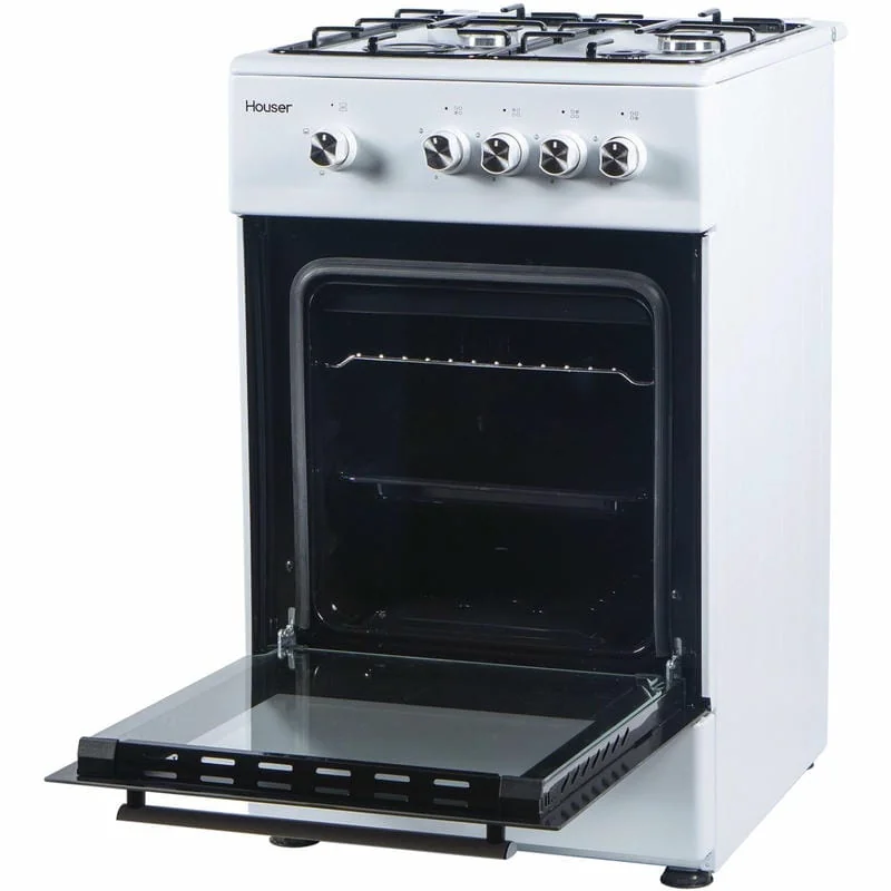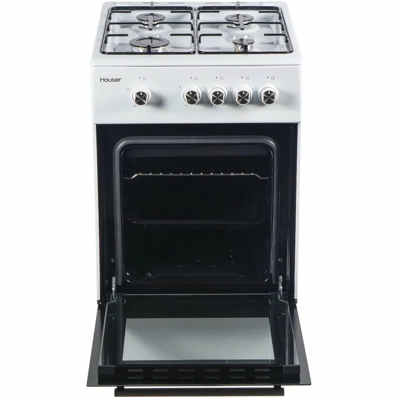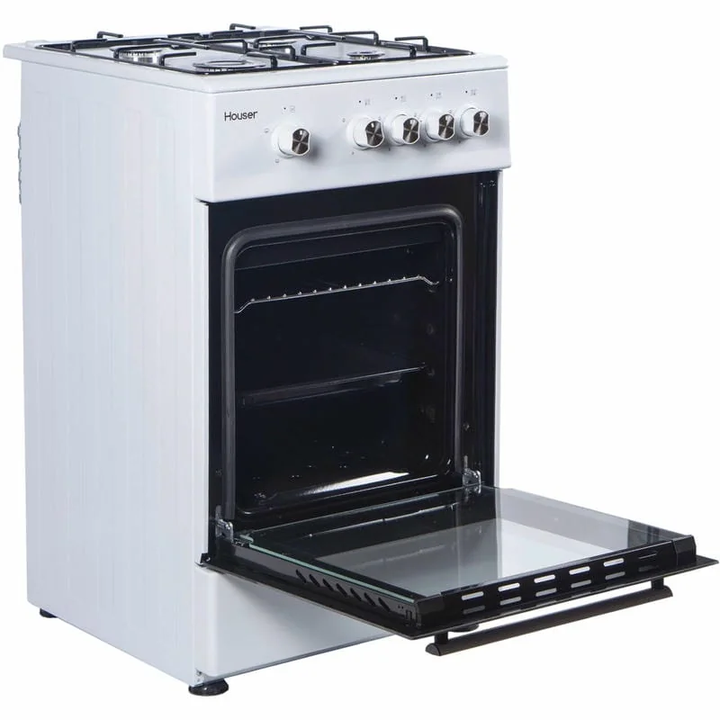 Газова плита Houser FSG 5200 W — це зручний і функціональний кухонний прилад, який ідеально підходить для приготування різноманітних страв. Вона оснащена чотирма газовими конфорками, які забезпечують швидке та ефективне нагрівання. Емальована решітка для каструль додає зручності у використанні та легко чиститься. Завдяки газ-контролю плити та духовки забезпечується додаткова безпека, адже подача газу автоматично припиняється у разі згасання полум'я.