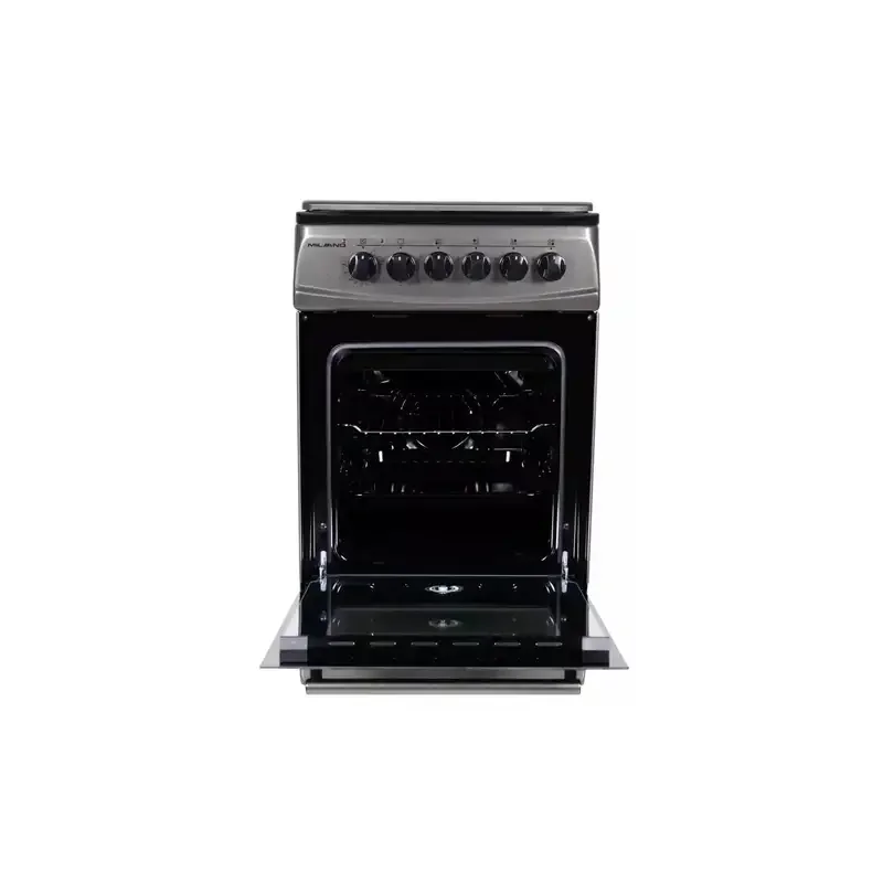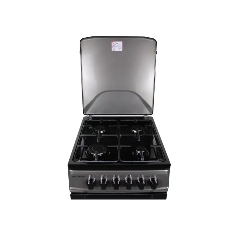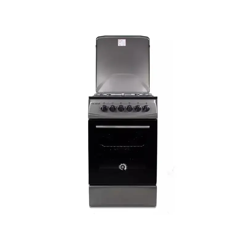 Комбинированная плита, газовая поверхность с электрической духовкой, традиционная очистка, металлическая крышка.